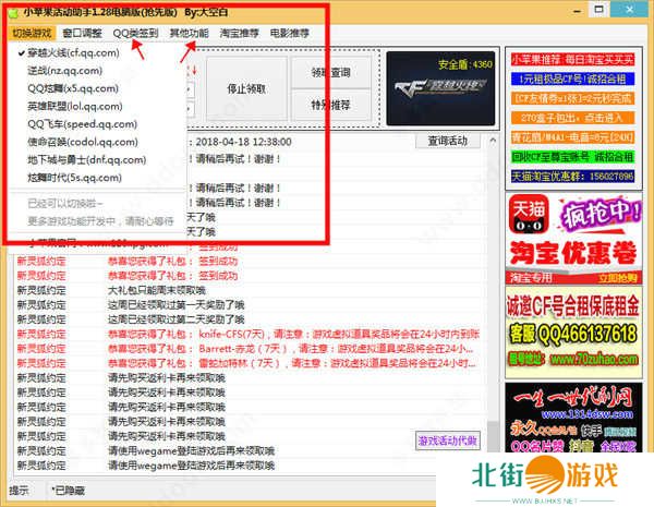 8、除去CF游戏以外还有QQ飞车,逆战等端游的网页活动代为领取。