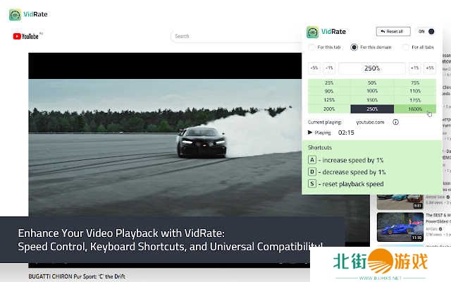 使用VidRate升级您的视频观看体验,这是一款最大限度的浏览器扩展。通过其强大的功能,享受对视频的增强控制。VidRate在包括YouTube在内的各种平台上无缝运行,并支持通用的HTML5视频。轻松调整播放速度的顺序体验您的偏好。此外,利用便捷的键盘快捷键轻松控制。立即通过VidRate提升您的视频播放吧!