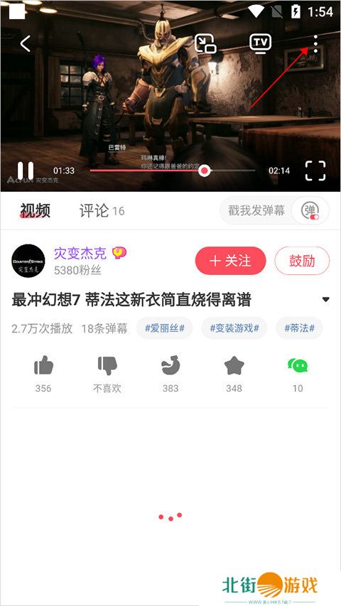 1、用户进行视频播放页面后,点击视频播放画面任意区域,然后播放画面右上角位置会出现扩展图标(下图红色箭头所指)