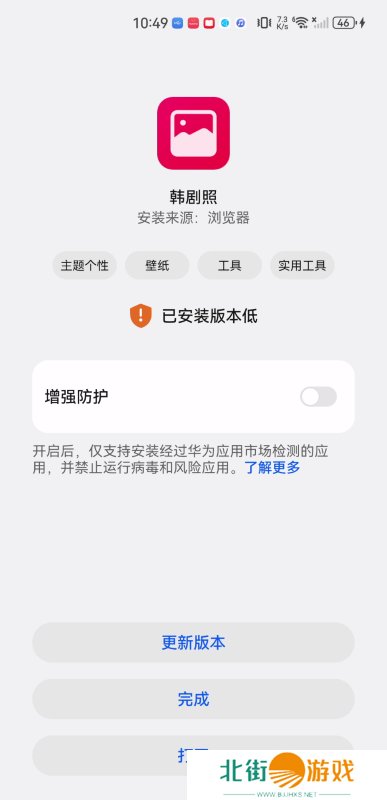 5、最终,出现“已安装版本低”,点击打开,即可体验。(必要的时候,还可以点击更新版本~)