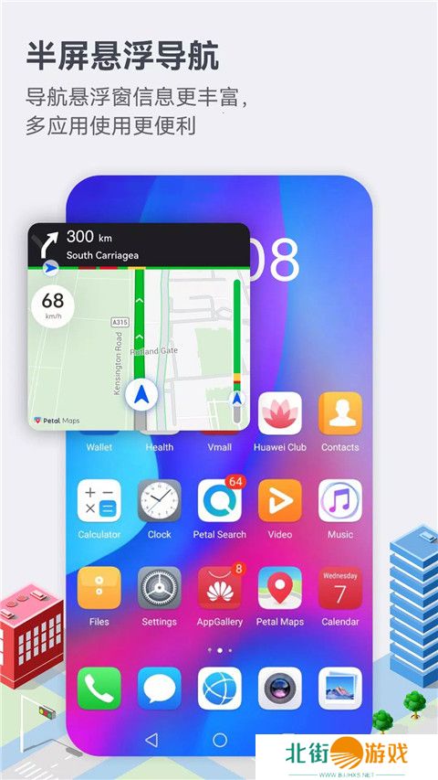 1、悬停导航窗口以释放屏幕,自信地切换应用程序,导航信息将持续显示。