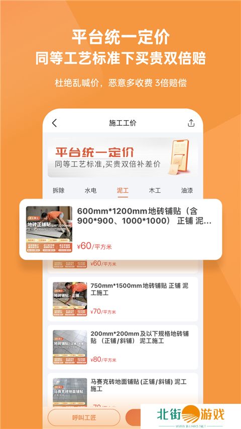 3、自由购买所需要的材料和服务,价格透明可比价,所选工人工钱了如指掌。