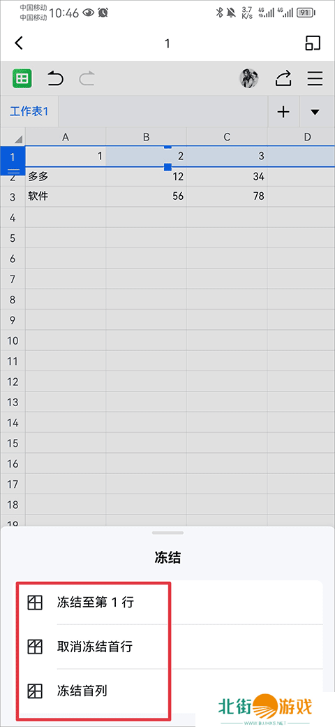 金山文档协同办公软件怎么冻结单元格?