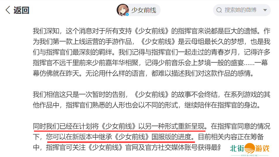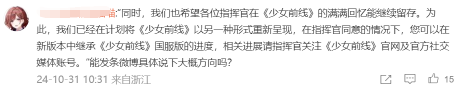 今天很多人在讨论《少女前线》放出的停运公告。 这件事确实有冲击感:近些年停运的二游虽然不少,但还没出现过《少女前线》这样运营8年且保持活跃的大IP产品。 《少女前线》的玩家对此明显有些“措手不及”,比如有老用户在网上四处问“官博是不是被盗号了”、“谁知道是怎么回事”,希望只是个“玩笑”。而在一遍遍确认了这个消息的准确性后,有人沉默、有人生气,更多人是不舍与难过。 氛围弥漫到整个二游圈子,其他长线运营中的二游也有部分用户开始担心,自己玩了很多年的产品会不会像《少女前线》一样“醒来就没了”…… 所以,和少女前线IP一起成长起来的散爆为什么会做出该决定? “太突然了!我以为至少会陪伴10年” 从公告看,官方给出的原因是“与成都数天协议到期,未能达成续约”、“协议有版号相关条例”。 不难理解,在当前严格的政策规范下,如果想要保持运营,《少女前线》就得重新申请版号或申请变更运营单位,而过去8年累积的体量决定了审核过程耗时更久,散爆可能无法保证在合约结束前完成,才不得不决定停运(需提前公告)。 但,有没有可能是“官方借这次合约到期的节点,来完成早早就准备好的停运计划”?我原本是有些怀疑的,毕竟《少女前线》已经不在巅峰期了,把团队力量抽出来去服务更赚钱的项目无可厚非。不过在了解到更多情况后,我确定了这种猜测是错误的。 一款游戏停运前往往会有所征兆,比如团队变动、更新迟缓、口碑崩坏等等。 可这些跟《少女前线》不搭边,一位从18年开始玩《少女前线》的朋友告诉我“停运发生的太突然了”,他在少前认识的、如今还玩着的兄弟大都觉得不真实,“完全没有感受到苗头”,“大家都觉得运营10年不是什么问题”。他还谈到,今年《少女前线》做新活动的频率也远高于前两年,“哪有游戏快停运了团队还拼命开发内容的?” 为此,我特意去翻找了《少女前线》近期动态,还真找不出停运理由: 一方面,十几天前《少女前线》刚刚更新了主线剧情(根据官方早期放出来的全年活动计划,在12月还会有一次主线剧情活动),并且,这个月底《少女前线》还公布了与《暗区突围》的全新联动爆料,玩家的热情肉眼可见。 可以说,当下的《少女前线》正处在版本开发投入后的“回收期”,如果早就准备好了停运,也不该在这个时间宣布来“自断财路”。另外值得注意的是,今年更新的很多内容质量相当有保障,在B站等平台中总能看到玩家们给出的赞扬。 另一方面,10月中旬《少女前线》还宣布了启动新二创活动的相关内容征集,有多个赛道涉及多个平台,活动一直持续到11月底。这种服务于游戏用户生态的运营活动前期就需要策划、与平台沟通,如果早早就计划了游戏停运,自然完全没有再投入的价值。 在其他更新内容中也可以找出各类印证,比如10月11号定位的版本问题,10月17号更新中就做了修复解决,再比如10月上旬还进行了一次大版本优化,其中新增了“游玩指引”的模块,方便玩家可以快速的找到和完成当日目标,都能证实项目组正在用心投入。 总而言之,基本可以判断这次的停运确实源自“不可控因素”。 有“复活”希望!真能等到“承载版本”吗? 这次的停运虽然已经是不可逆的定局了,但并没有堵死《少女前线》玩家的希望:官博公告中提到了一句“计划将《少女前线》以另一种形式重新呈现”,且“可以在新版本中继承《少女前线》国服版的进度”。也就是说,已进入复活阶段。 当然也有质疑这会不会是官方画的“大饼”,不知道要等多少年,毕竟见过“复活”的产品,还没听说过能直接继承原本进度的,谁会干这种吃力又不赚钱的事? 笔者认为,等到“承载版本”这个事情并不是“白日做梦”,放在其他产品上或许不合理,但如果是《少女前线》我们真能找到散爆为之投入的理由: 从“没人情味儿”的商业角度谈,其一,《少女前线》有足够强的IP触动力,尽管IP用户可能分散在多个产品乃至整个二游圈子中,但他们都对《少女前线》有认知,这意味着《少女前线》“承载版本”能释放出足够的声量,甚至吸引那些老玩家回流。 如今二游这个赛道极为内卷,去创造一些新的、没有IP的产品上,还不如做好IP产品成功概率高,而且少前的玩法撑得住体验,值得散爆团队保持投入。 其二,散爆网络有很大一部分忠实用户都是因为《少女前线》而陪伴这家公司走过这么多年,这家公司最懂得《少女前线》IP用户的支撑力,因此,他们敢于提出做“承载版本”必然有清楚的判断后者是可以持续运营下去的。 而且《少女前线》的忠实玩家也在证明着对“承载版本”的期待,这才是决定《少女前线》能不能复活、什么时候会复活最关键的因素,能带给项目组更多信心。 这两年,行业出现了太多玩家舍不得的产品因为各种原因停运,只能在相册里回忆。《少女前线》这样能在停运时就给出稳定后续预期的,对真正喜爱这款游戏的玩家来说也算是“不幸中的万幸”了,期待大家能在不久后的将来一起迎接黎明。
