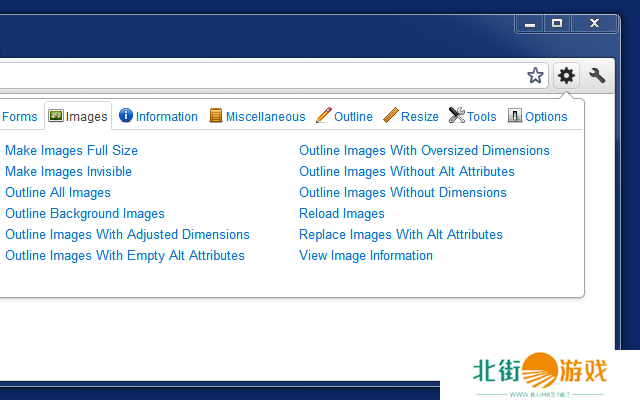 Web Developer插件的工具栏很多,Web Developer 主要由以下几个部分组成:Disable、Cookies、CSS、Forms、Images、Information、Miscellaneous、Outline、Resize、Tools、View Source和Options。如下图所示: